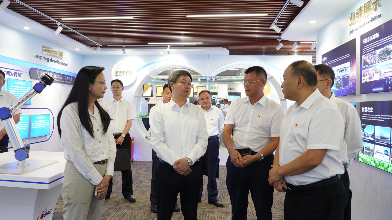 陳錫明一行走進航天建設所屬航天設計企業(yè)展廳,詳細了解企業(yè)歷史沿革、關鍵核心技術及資質(zhì)、市場拓展、產(chǎn)業(yè)發(fā)展、黨建工作等基本情況。