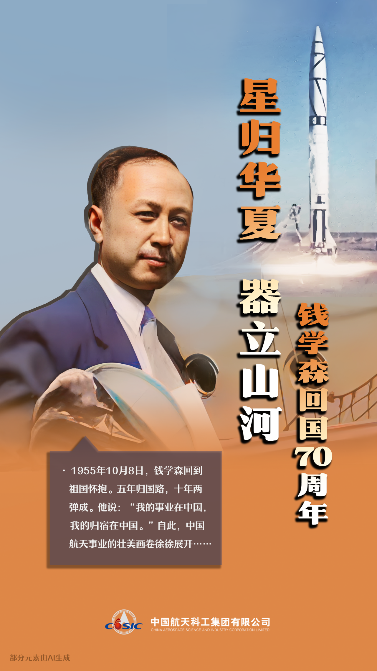 星歸華夏、器立山河,追憶錢老、傳承精神,繼往開來(lái)、接續(xù)奮斗。(海報(bào)/張彤 文案/韓超)