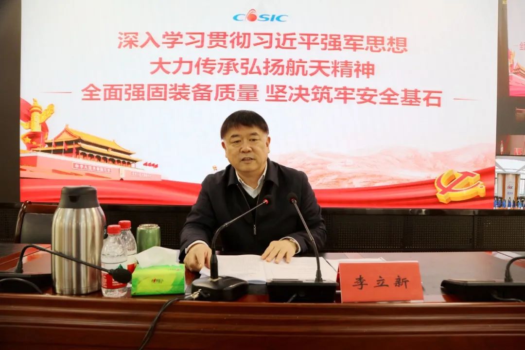李立新圍繞“深入學習貫徹習近平強軍思想 大力傳承弘揚航天精神 全面強固裝備質量 堅決筑牢安全基石”主題,帶領大家深入學習習近平強軍思想的豐富內(nèi)涵,習近平總書記關于發(fā)展航天事業(yè)、加強裝備質量、做好安全生產(chǎn)等方面的重要論述和重要指示批示精神。他飽含深情地回顧了中國航天固體動力事業(yè)的發(fā)展歷程,系統(tǒng)闡述了航天精神的特質內(nèi)涵,緊密結合六院形勢任務和具體實例,對學習貫徹習近平強軍思想、大力傳承弘揚航天精神,進一步強固裝備質量、加強安全生產(chǎn)等工作提出了具體要求。