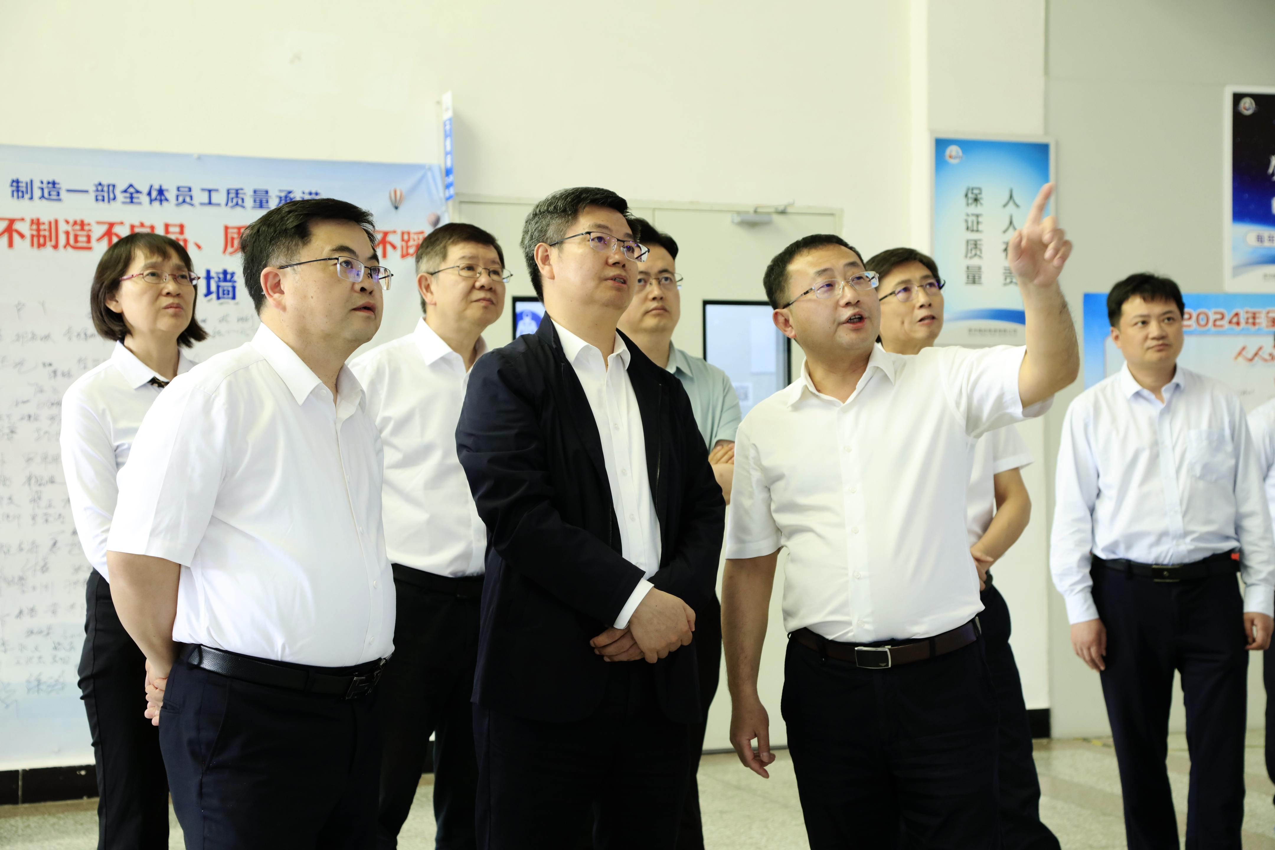 陳錫明一行觀看了航天江南成果展示,了解航天江南航天防務事業(yè)發(fā)展歷程,并深入十部、航天電器、梅嶺電源、航天天馬等單位科研生產(chǎn)一線,調(diào)研企業(yè)經(jīng)營、科研生產(chǎn)、科技創(chuàng)新、人才隊伍建設等情況,與基層單位負責人、“兩總”、一線員工現(xiàn)場溝通交流。