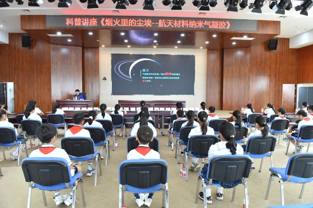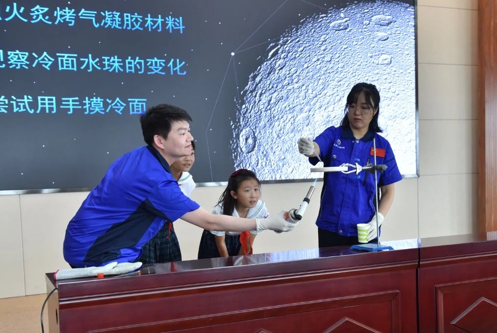 升旗儀式結(jié)束后,306所青年科技工作者廖博士為云崗小學(xué)師生帶來了一堂題為《煙火里的塵埃——航天材料納米氣凝膠》的科普課。課堂上,通過趣味講解、實(shí)物展示、模擬試驗(yàn)、互動(dòng)問答等形式,對這種已經(jīng)成功運(yùn)用于長征五號(hào)運(yùn)載火箭、嫦娥四號(hào)月球探測器等航天器上的新型航天材料進(jìn)行了現(xiàn)場揭秘,并為同學(xué)們介紹了氣凝膠研制團(tuán)隊(duì)不為人知的研發(fā)故事。互動(dòng)環(huán)節(jié),學(xué)生們走上講臺(tái)親自操作實(shí)驗(yàn)儀器,零距離驗(yàn)證氣凝膠材料的優(yōu)異性能。在充滿樂趣的課堂上,同學(xué)們學(xué)習(xí)了航天知識(shí),感受到航天科技的魅力。