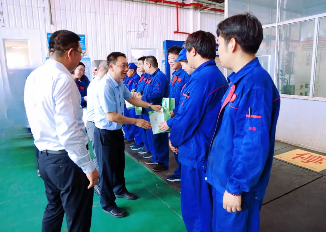 “你們現(xiàn)在每班工作多長(zhǎng)時(shí)間?”“每天排班幾次?幾班倒?”“休息室里有沒(méi)有空調(diào)?”在車間里,院領(lǐng)導(dǎo)與大家深入交談,詳細(xì)詢問(wèn)了當(dāng)前生產(chǎn)作業(yè)的情況,代表院黨委向奮戰(zhàn)高溫的勞動(dòng)者致以誠(chéng)摯的敬意和深切的問(wèn)候,囑咐大家一定要做好高溫天氣下的防暑降溫和勞動(dòng)保護(hù)工作,科學(xué)調(diào)度、勞逸結(jié)合、注意身體。施毅要求各單位要嚴(yán)格落實(shí)安全生產(chǎn)和防暑降溫措施,不斷改善職工工作環(huán)境、工作條件,開(kāi)展好“送清涼”慰問(wèn)工作,切實(shí)保障好職工的安全和身心健康,確保廣大職工平安度夏,更好推動(dòng)全年科研生產(chǎn)各項(xiàng)任務(wù)完成。