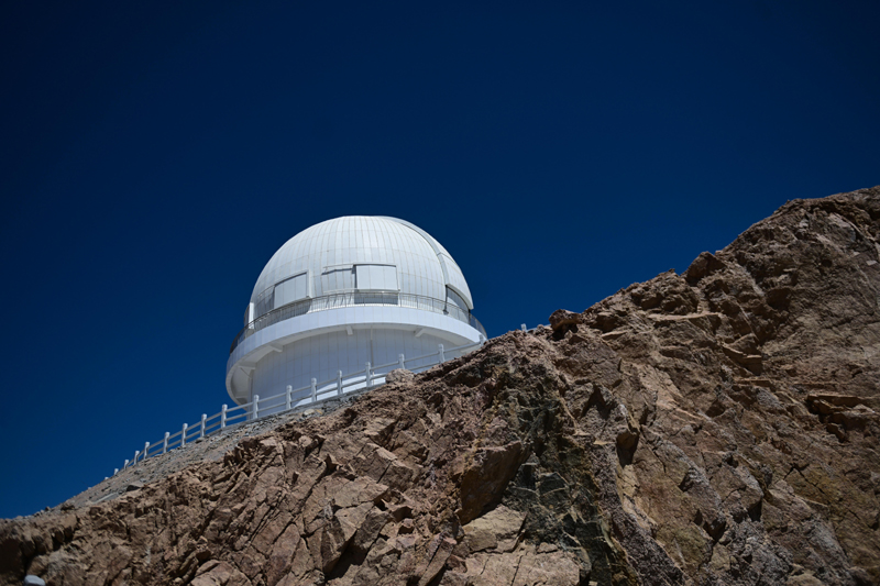 這是在青海省海西蒙古族藏族自治州茫崖市冷湖鎮(zhèn)賽什騰山拍攝的中國(guó)科學(xué)技術(shù)大學(xué)和中國(guó)科學(xué)院紫金山天文臺(tái)聯(lián)合研制的大視場(chǎng)光學(xué)成像望遠(yuǎn)鏡——墨子巡天望遠(yuǎn)鏡(2024年4月20日攝)。新華社記者 張龍 攝