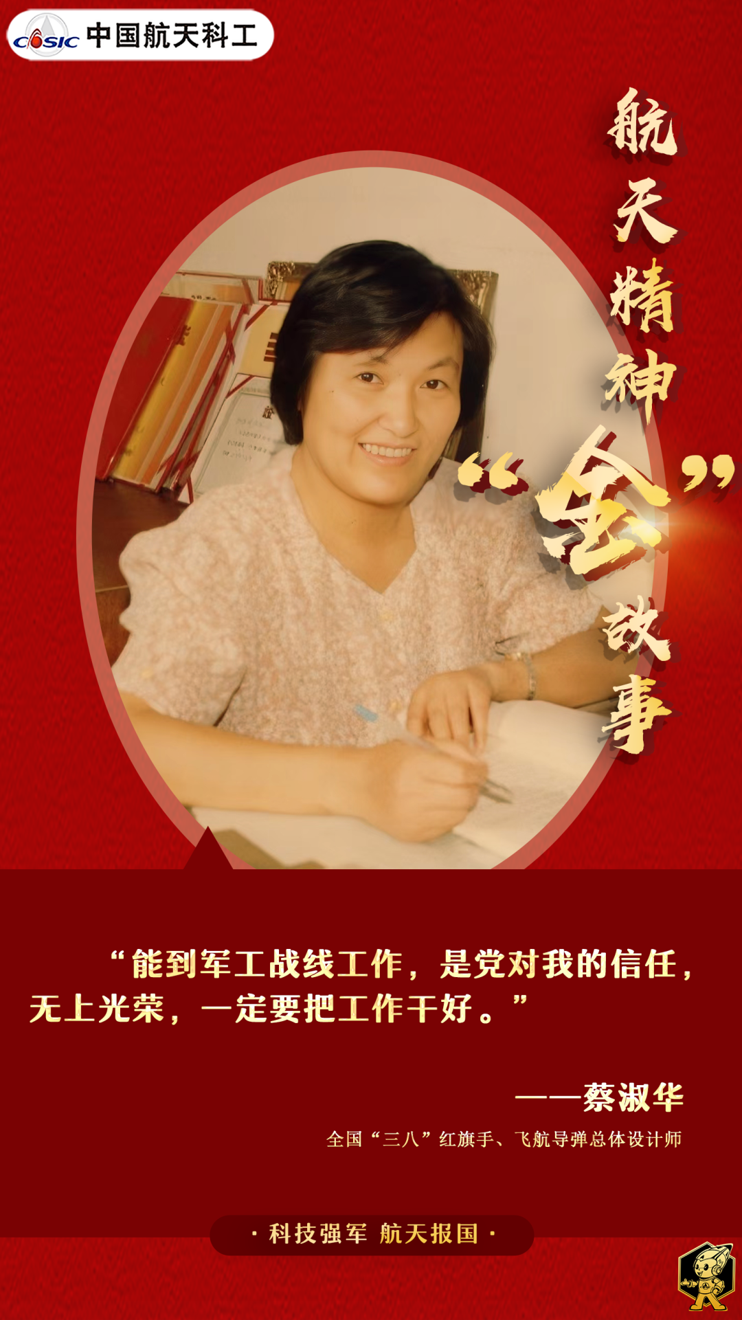 驚濤駭浪中,她把自己綁在船艦設(shè)備上,像在告訴我們:如何將自己的一生牢牢綁定中國航天。擇一業(yè),終一生。既然選擇了國防軍工和航天事業(yè),那就必須義無反顧、奮勇向前!誰說女子不如男?像蔡淑華一樣負重拼搏、敢為一流的巾幗英雄,正英姿颯爽,亮劍疆場!