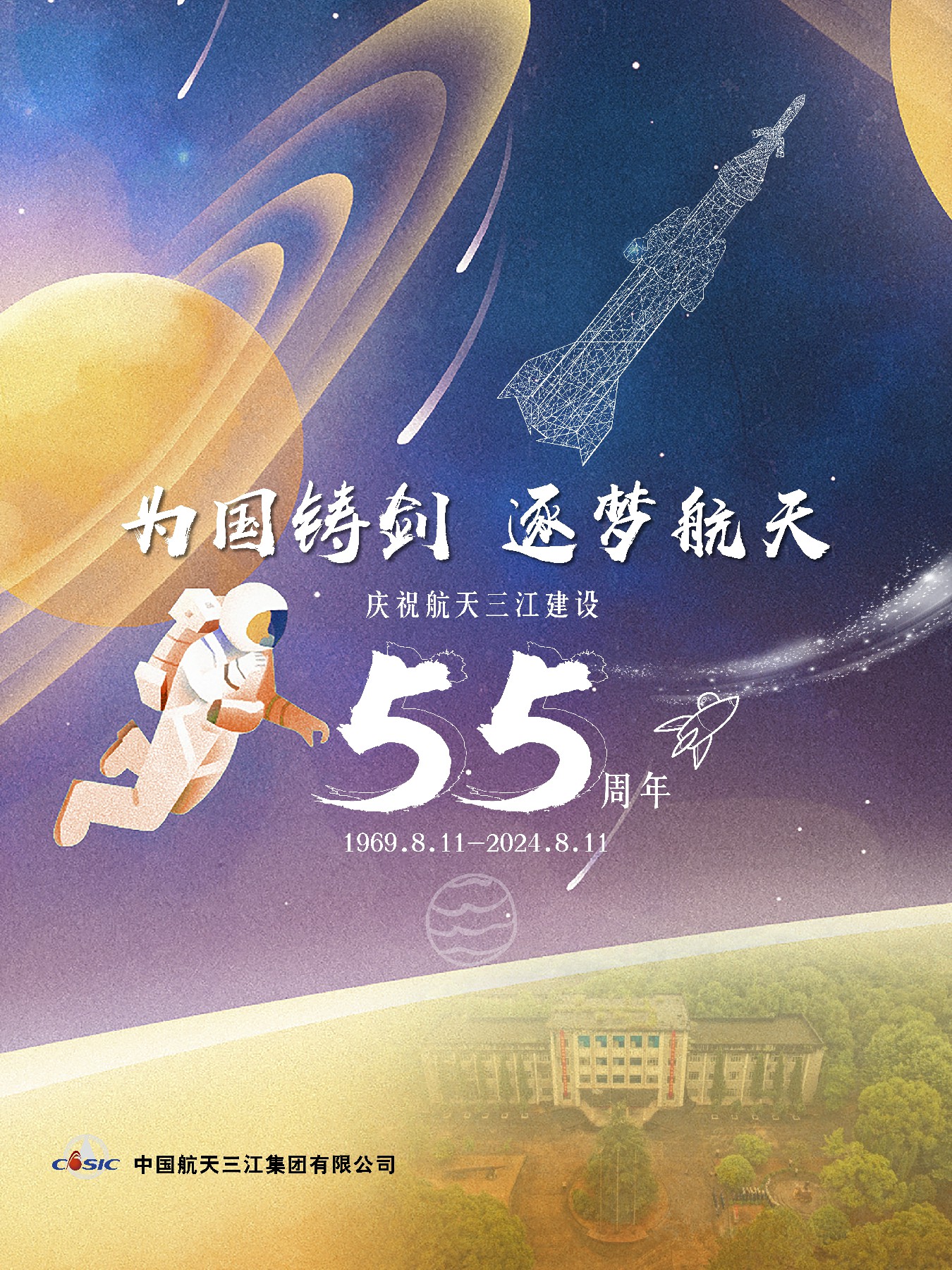 1969年8月11日,敬愛(ài)的周恩來(lái)總理親自批示“同意”建設(shè)066基地。這一天被正式確定為“航天三江建設(shè)紀(jì)念日”,2024年是航天三江建設(shè)55周年。在紀(jì)念日前夕,航天三江所屬各單位以多種方式回望那段崢嶸歲月,向老一輩三江人致敬,共同祝福航天三江在高質(zhì)量發(fā)展的新征程上揚(yáng)帆遠(yuǎn)航。