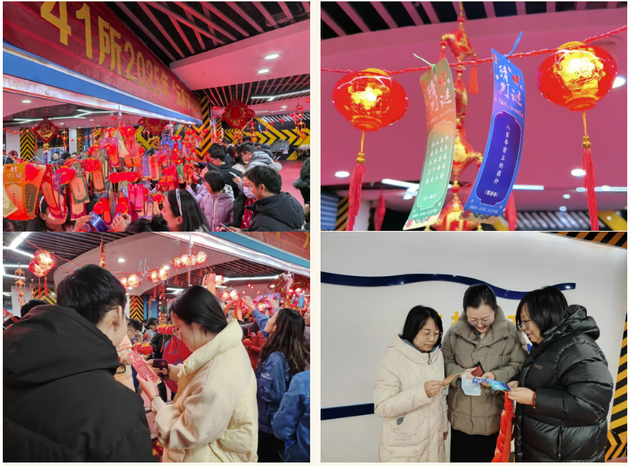 活動現(xiàn)場張燈結(jié)彩,喜氣洋洋。41所工會精心組織,職工積極參與現(xiàn)場布置和活動開展?;顒蝇F(xiàn)場懸掛著大大小小的中國結(jié)、紅燈籠,300多條燈謎琳瑯滿目,到處洋溢著濃濃的節(jié)日氛圍。