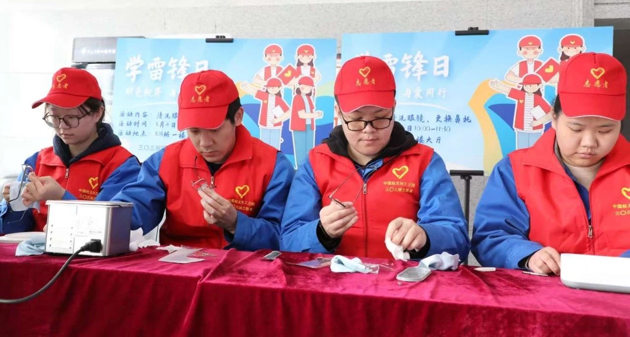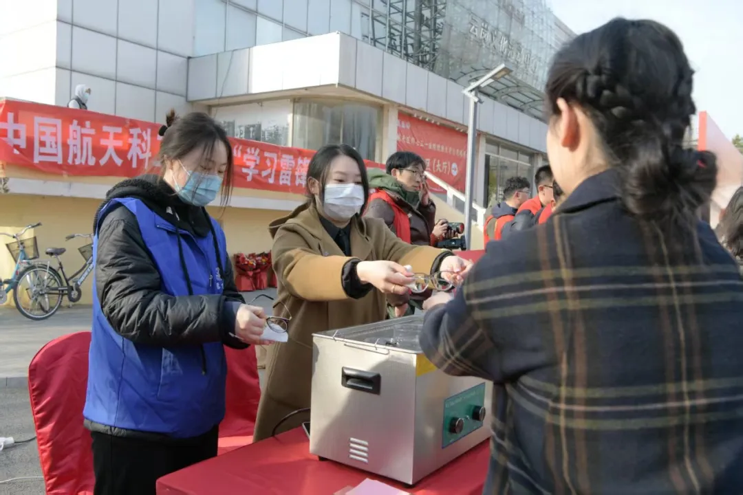 ▲303所團(tuán)委舉辦了“明亮視界 與愛同行”志愿服務(wù)活動(dòng),為所內(nèi)職工提供更換鼻托和超聲波清洗眼鏡服務(wù)。