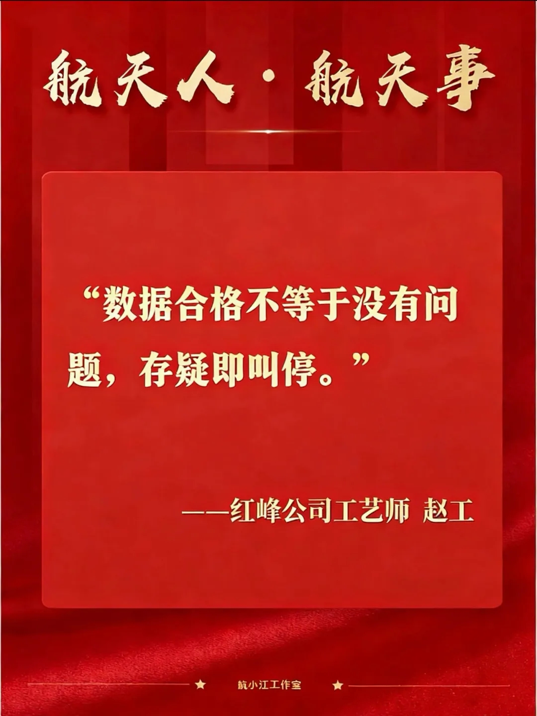 他就是航天科工九院紅峰公司副主任工藝師趙工。沒有絲毫猶豫,更不懼承擔(dān)壓力,他以專業(yè)的研判和果斷的行動(dòng)守住質(zhì)量防線。在他看來:“數(shù)據(jù)合格不等于沒有問題,存疑即叫停。”