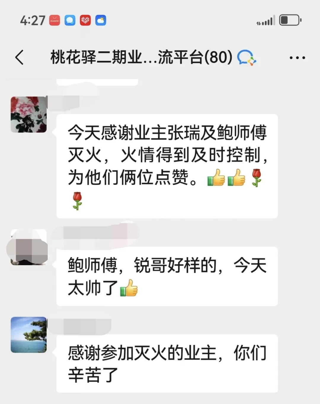 事后,同小區(qū)住戶將現(xiàn)場(chǎng)視頻發(fā)布到網(wǎng)上,鮑師傅和鄰居一起奮不顧身、守護(hù)鄰里的義舉被更多人知曉,小區(qū)業(yè)主們紛紛在群里為他們點(diǎn)贊。